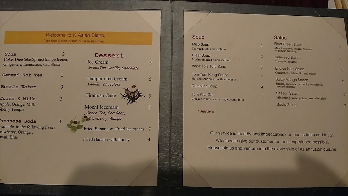K Asian Bistro Sushi Bar Menu