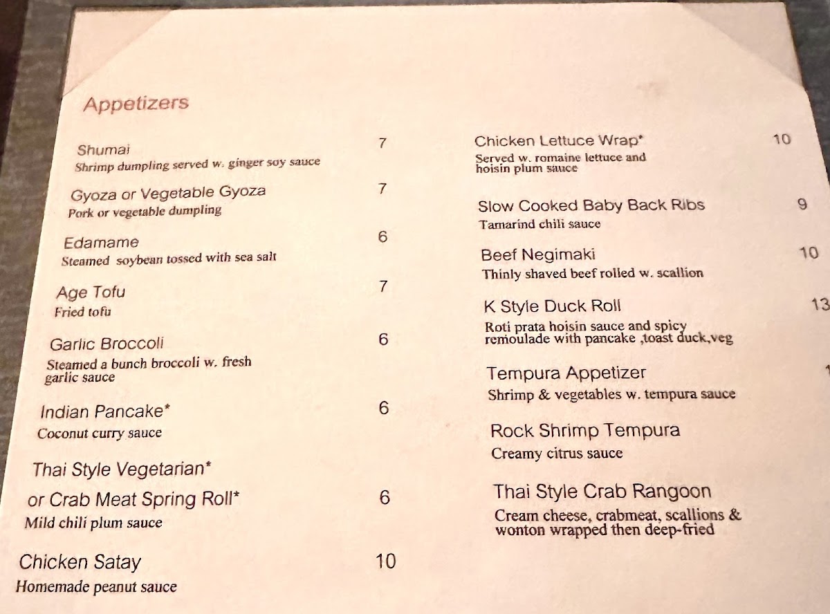 Many choose to savor their meals here as part of an easygoing evening or weekend dining experience, where the inviting atmosphere matches the thoughtful preparation of each plate. Items like the Tempura and Thai Style Crab Rangoon are perfect for sharing, while fresh salads and miso soup offer clean, crisp starters that complement the main courses. The combination of wok-grilled dishes, classic rice and noodle options, and a diverse sushi selection reflects a balanced menu meant to be enjoyed at a comfortable pace, encouraging conversation and connection.